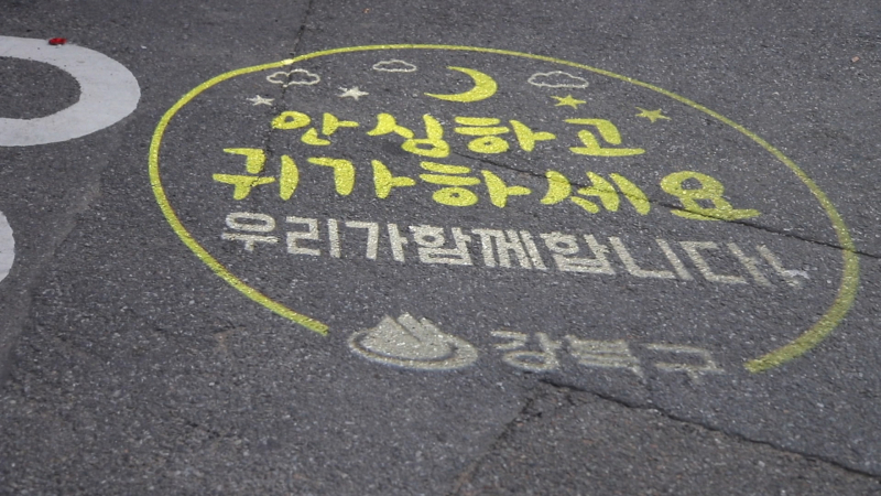 강북구가 여성이나 어린이 등 범죄 취약계층이 야간에 안심하고 귀가할 수 있도록 골목길 전신주 17곳에 알림조명, 로고젝터를 설치했다.