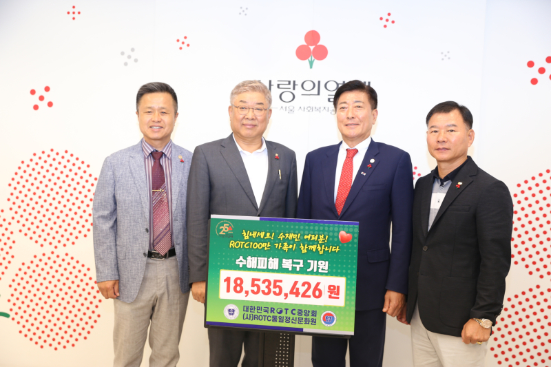 ROTC중앙회의 ‘수해복구 성금 모금운동’은 지난달 20일부터 28일까지 일주일간 진행됐으며, ROTC 동문과 단체에서 500여 명이 동참했고 8653만5426원의 성금을 모았다.