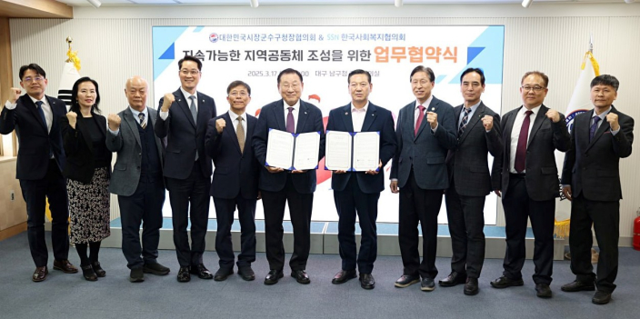 대한민국시장·군수·구청장협의회(대표회장 조재구 대구 남구청장, 이하 시장군수구청장협의회)가 17일 대구광역시 남구청에서 '한국사회복지협의회'와 업무협약을 체결했다.