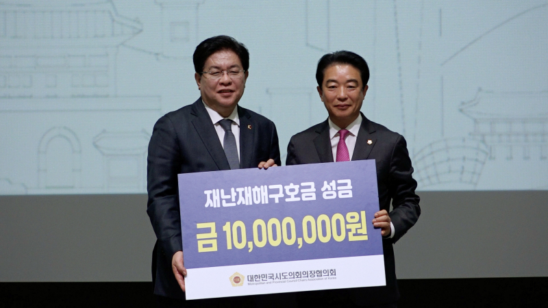 한편, 대한민국시도의회의장협의회는 이날 지난 3월 대형 산불 피해 지역의 신속한 복구 지원을 위한 재난구호금 전달식을 하고 경상남도의회와 경상북도의회에 각각 1,000만 원을 지급했다.