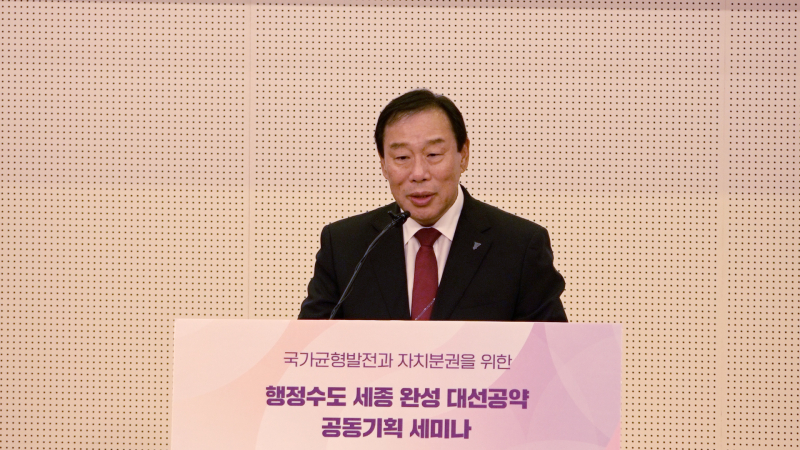 행사는 임정빈 한국지방자치학회장의 개회사로 시작됐으며, 오영철 세종사랑시민연합회장과 최민호 세종특별자치시장이 환영사를 통해 행정수도 완성은 더 이상 지역 공약이 아닌, 국가 생존전략임을 강조했다. ▲최민호 세종시장이 연설을 통해 시대적 방안 모색의 중요성을 강조했다. [지방자치TV] 최민호 시장은 “행정수도 완성은 헌법, 법률의 문제가 아니라 앞으로 우리 대한민국이 살 길”이라며 “정치적 구호나 선거 때만 반짝하는 빈 공약 아니라 대한민국이 살아남을 수 있는 시대적 방안을 찾는다는 마음을 가져야 한다”고 강조했다.