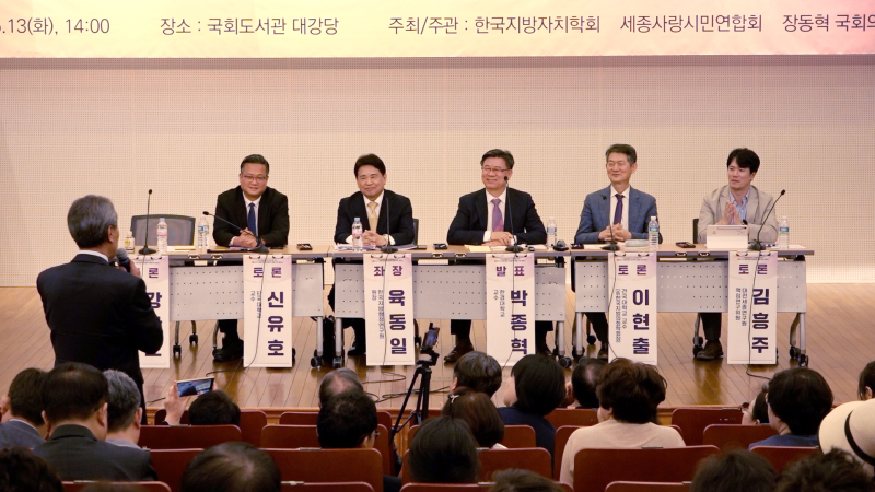 한국지방자치학회, 세종사랑시민연합회, 장동혁 국회의원실, 지방자치TV는 13일 오후 2시, 국회도서관 대강당에서 ‘국가균형발전과 자치분권을 위한 행정수도 세종 완성 대선공약 공동기획 세미나’를 개최했다.