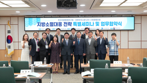 한국지방행정연구원(원장 육동일)과 대한민국시장·군수·구청장협의회(회장 조재구)가 24일 국회의원회관에서 업무협약을 맺고, 김형동·이원택 국회의원과 공동으로 '지방소멸대응 전략 특별세미나'를 개최했다.
