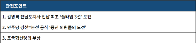 경선이 곧 본선으로 이어지는 전남 정치 지형 특성상, 이번 선거는 단순한 집권당 후보 선출을 넘어 전남 정치권력 재편의 분수령이 될 것이라는 전망이 힘을 얻고 있다.