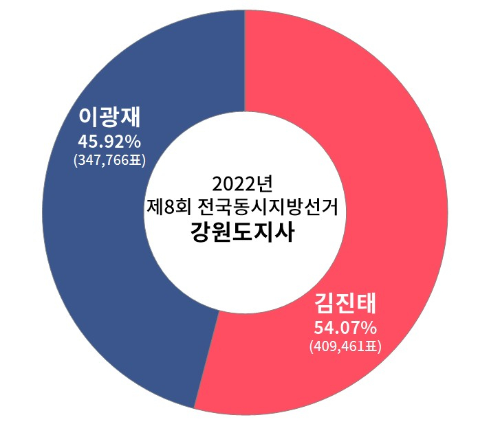2022년 제 8회 전국동시지방선거 강원도지사 선거에서는 유권자수 약 1,336,080명 중 757,227표가 집계됐다.