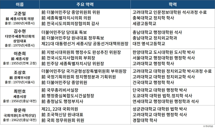 ◆주요이력 ◆출마예정자 동향(가나다순)