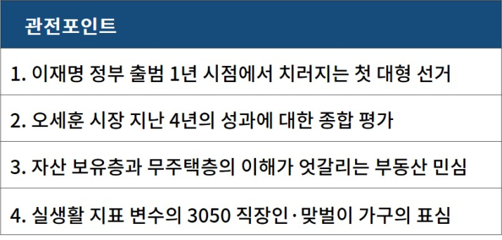 서울은 최근 두 차례 선거에서 보수 진영에 힘을 실어줬다. 2021년 보궐선거와 2022년 지방선거 모두 오세훈 시장의 승리로 귀결됐다. 다만 지방선거와 달리 이번 선거는 정권 1년 평가 성격이 더해지면서 정치적 함의가 확대됐다는 분석이 나온다. 서울은 전국 정치 흐름을 가늠하는 지표로 여겨져 왔다. 이번 선거 역시 수도권 민심의 향배를 보여주는 시험대가 될 전망이다.